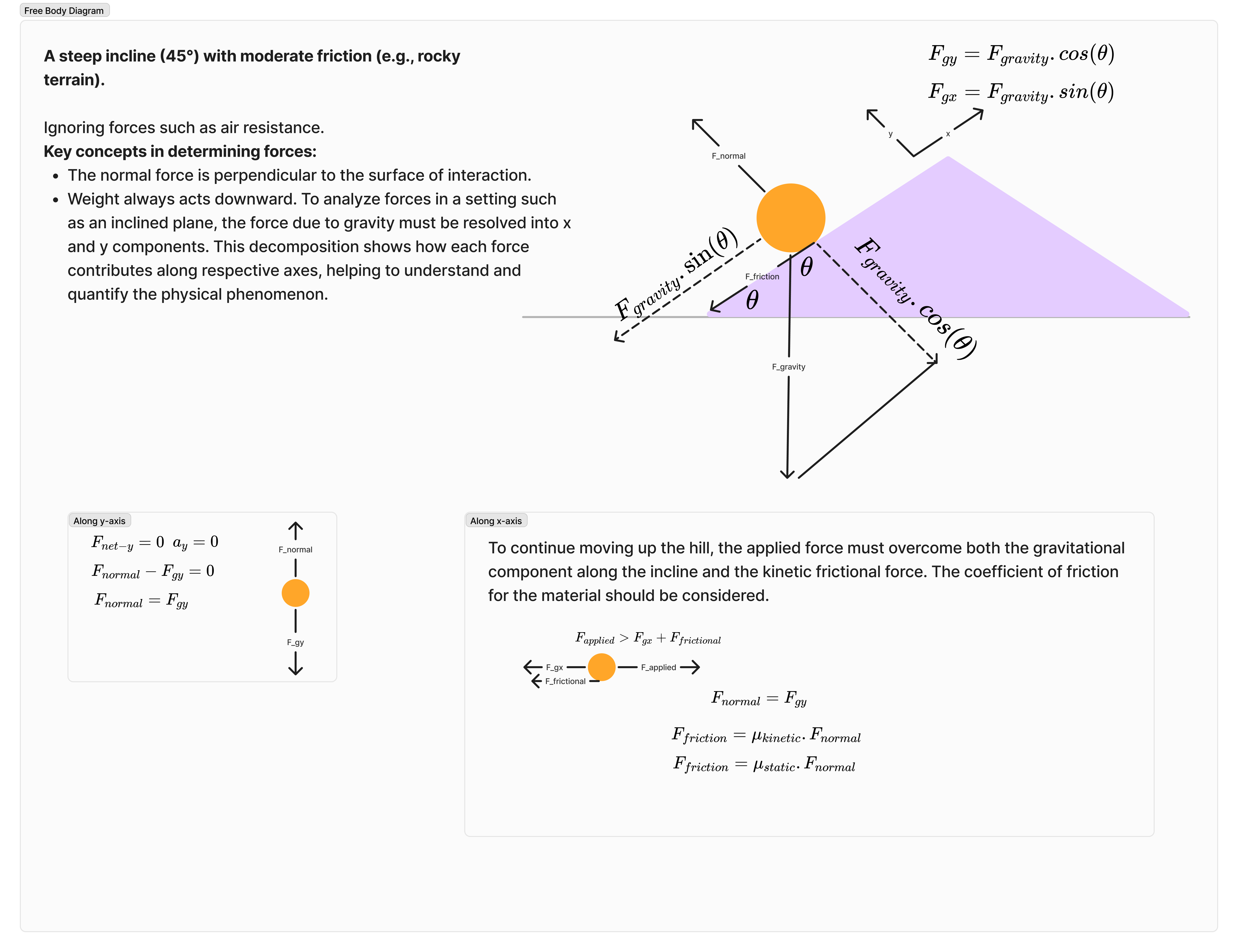 [Phase 0] Applied Force: 111.692 N Position: 5.9633 0.0 0.240999 m Velocity: 3.71986 0.0 2.14882 m/s Distance to incline: 4.0367 m Reached incline: No ❌ Moving with insufficient force! ✅ Correctly unable to climb incline with insufficient force.[Phase 0] Applied Force: 111.692 N Position: 7.99245 0.0 1.41345 m Velocity: 1.57182 0.0 0.908648 m/s Distance to incline: 2.00755 m Reached incline: No ❌ Moving with insufficient force! ✅ Correctly unable to climb incline with insufficient force.- Sufficient Force Test